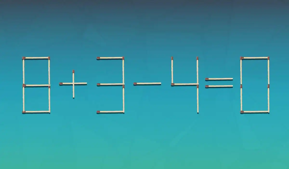 Soluția acestui puzzle ingenios este să transformi cifra 8 în 9, mutând un chibrit din partea stângă a ei pentru a transforma semnul minus în semnul plus. Astfel, egalitatea devine corectă: 9+3-4=8.