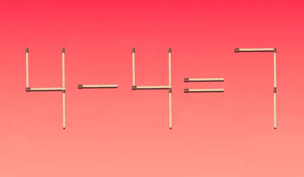 Pentru a corecta egalitatea 4-4=7 și a o face adevărată mutând un singur chibrit, trebuie să transformi prima cifră 4 în cifra 11. Mută chibritul vertical din mijlocul primei cifre 4 și așează-l orizontal în partea stângă a acesteia, obținând 11-4=7.
