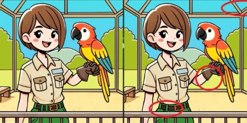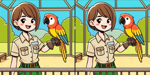 În fața ta sunt două imagini aproape identice cu o fată și un papagal. Sarcina este să găsești trei diferențe subtile între ele în doar 17 secunde. Cheia succesului este să-ți antrenezi atenția la detalii și să nu te lași păcălit de asemănarea generală.