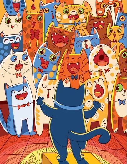 Imaginează-ți o scenă veselă: un cor întreg de pisici, cu gura căscată, cântă din toată inima. Se pregătesc pentru un concert important. Dirijorul, o pisică gri solemnă, le conduce. Pentru a le oferi energie, a adus pește proaspăt. Dar, ca în orice grup, există un mâncău care a devorat aproape tot. A rămas un singur pește, dar s-a ascuns în panică chiar în mijlocul corului! Îți poți testa viteza de percepție și acuitatea vizuală încercând să-l găsești în doar 12 secunde. Se spune că doar cei mai atenți, primii 3%, reușesc această provocare.
