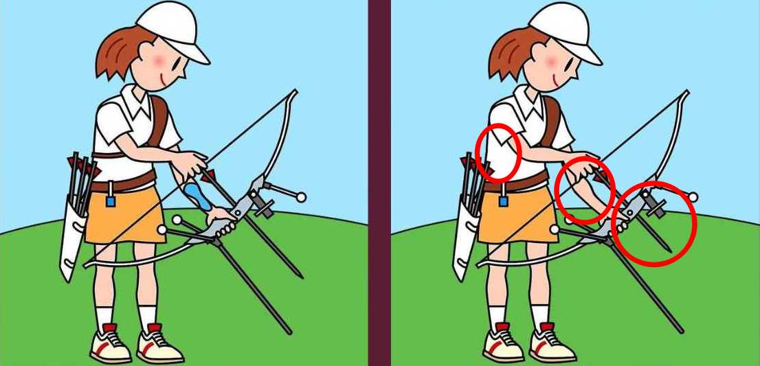Doar cei cu o atenție de vultur pot depista cele trei mici discrepanțe dintre imaginile fetei arcașe în doar 16 secunde. Secretul este să scanezi metodic fiecare zonă, de la fundal la prim-plan.