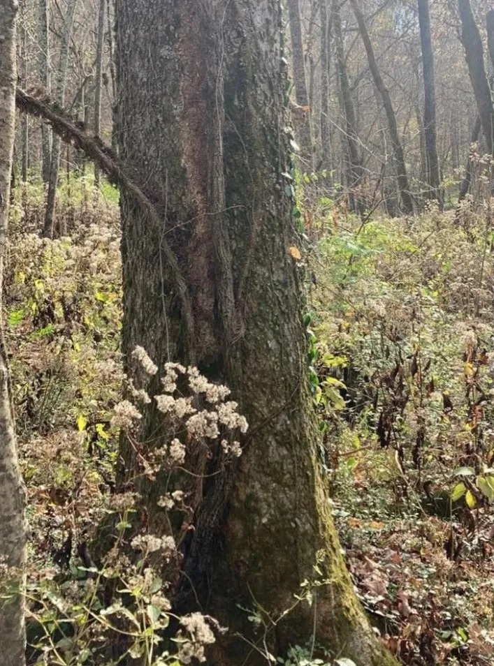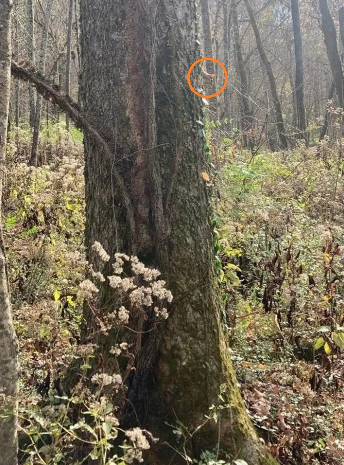 – Caută o formă care iese puțin din patronul uniform al scoarței copacului.
