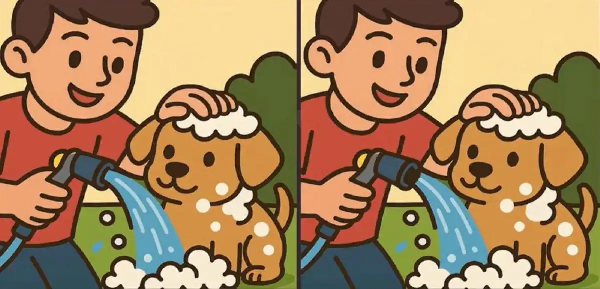 În această provocare vizuală, două imagini aproape identice cu un băiat care își îmbăiază câinele ascund trei mici diferențe. Sarcina ta este să le descoperi pe toate într-un timp limitat, punând la încercare atenția la detalii și viteza de observație. Secretul succesului stă în a scana metodic fiecare zonă a imaginii.