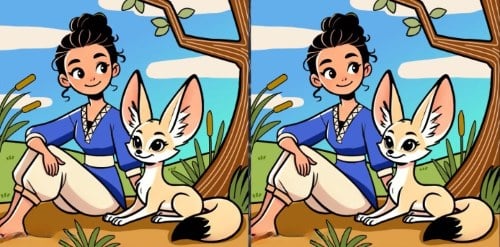 Contextul este simplu și fermecător: o fată stând lângă o vulpe într-un peisaj natural. Totul pare calm și identic. Însă, în doar 23 de secunde, trebuie să identifici trei locuri în care artistul a făcut modificări subtile. Limita de timp adaugă presiune și transformă exercițiul într-un test al răbdării și al capacității de a analiza rapid.