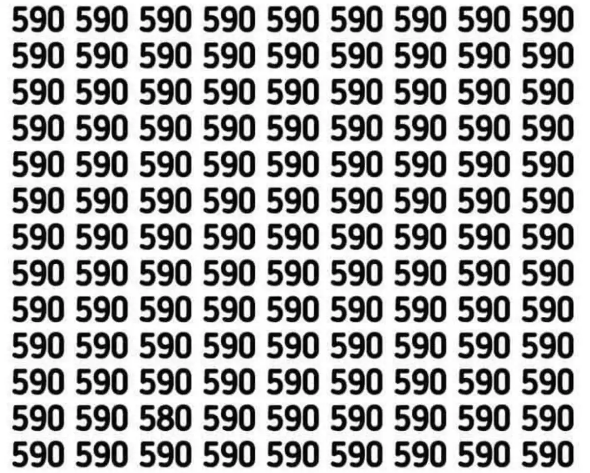 Iată contextul: vi se prezintă o matrice densă de numere scrise cu un font gros. Majoritatea absolută sunt cifra 590. Ascuns printre ele, ca un agent sub acoperire, se află o singură instanță a numărului 580. Timpul este limitat – ai doar cinci secunde la dispoziție. Sună ca o provocare pentru vederea de vultur, nu-i așa? Ia o respiratie adâncă și începe cronometrul!
