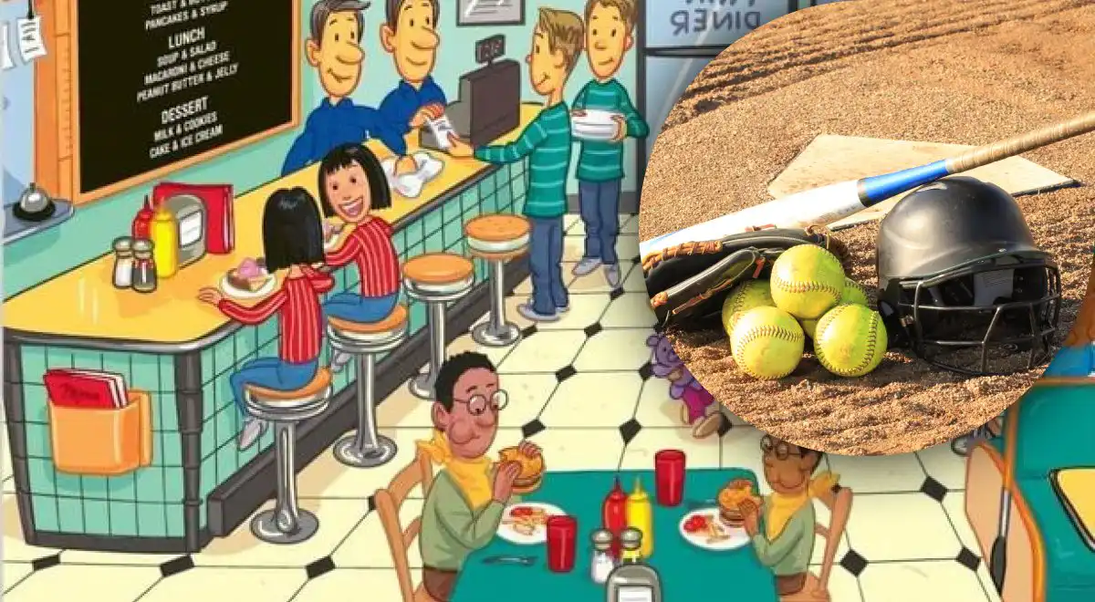 Această puzzle testează rapiditatea ochiului și atenția la detalii: o bâtă de baseball este ascunsă într-o scenă aglomerată a unei cafenele, confundându-se perfect cu decorul. Cheia este să nu cauți un obiect evident, ci o formă și o textură care se camuflează.