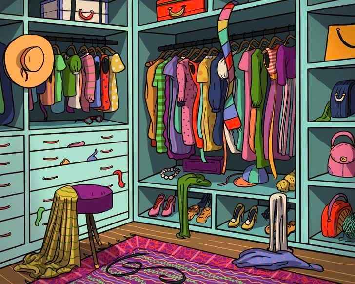 Uitați-vă atent la imagine. Dulapul este un adevărat labirint de forme și culori. Fiecare raft pare să ascundă ceva. Concentrarea este esențială aici. Încercați să nu vă uitați la imaginea ca la un tot, ci să scanați zone diferite, sistematic.
