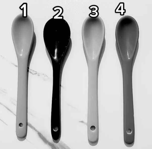 Această iluzie optică vă pune la încercare atenția și percepția culorilor: într-o imagine alb-negru, una dintre cele patru linguri este de fapt roșie. Cheia este să înțelegeți cum lumina și umbra pot ascunde sau dezvălui adevărata nuanță.