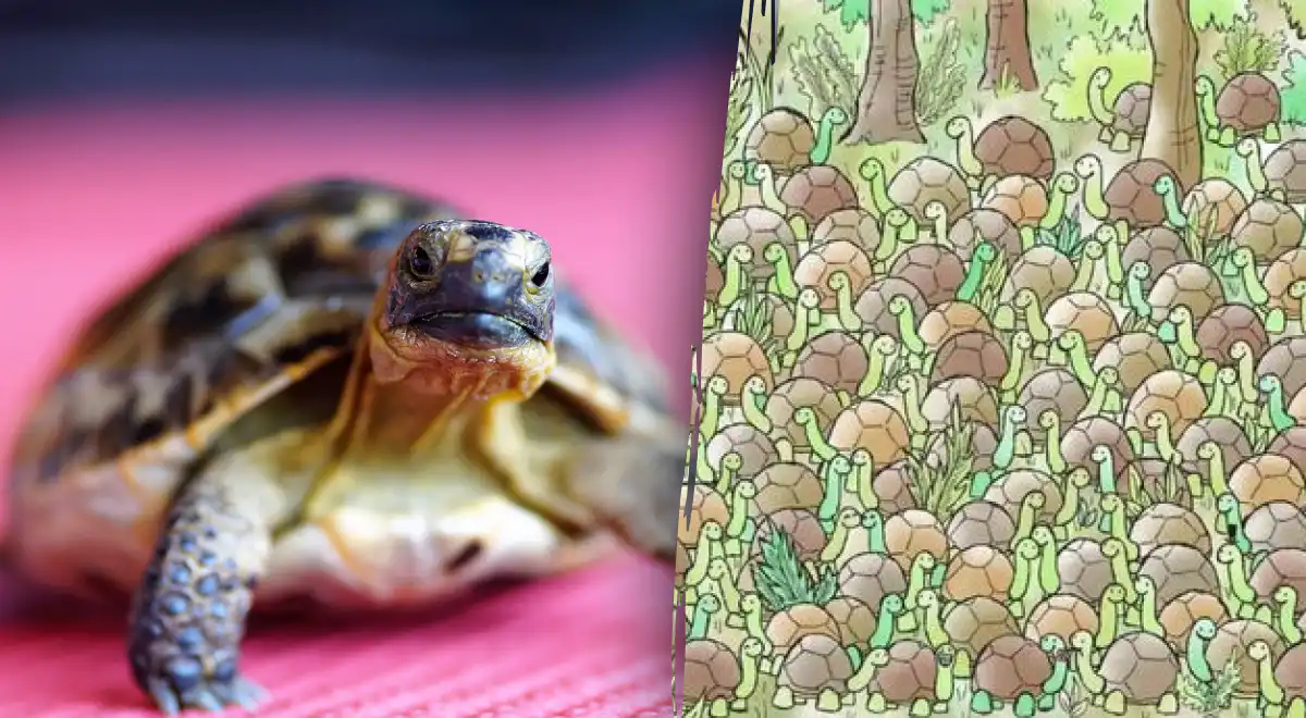 Iată o provocare care îți testează atenția la detalii și viziunea periferică. Imaginea pare a fi un mozaic fericit și liniștit de țestoase verzi, toate arătând în aceeași direcție cu un zâmbet prietenos. Dar printre ele se ascunde un intrus. Nu este o țestoasă. Este un șarpe, și el se confundă atât de bine încât ochiul tău ar putea să-l treacă cu vederea de zeci de ori. Acesta este farmecul acestor puzzle-uri: ele te învață să nu te lași păcălit de un model repetitiv și să cauți abaterile subtile.