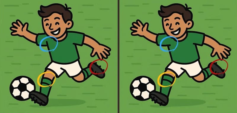 În fața ta sunt două imagini aproape identice ale unui fotbalist. Sarcina este să găsești cele trei mici diferențe ascunse între ele în doar 23 de secunde. Cheia succesului este atenția la cele mai mici detalii și o scanare sistematică a imaginii.