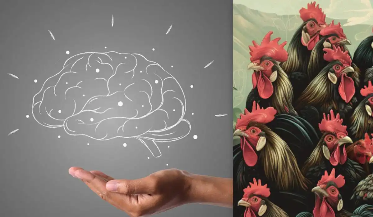 Această puzzle vizuală îți testează atenția și viteza de percepție: găsește singura găină ascunsă printre o mulțime de cocoși identici. Cheia este să cauți o diferență subtilă, dar distinctă, în anatomia păsărilor.