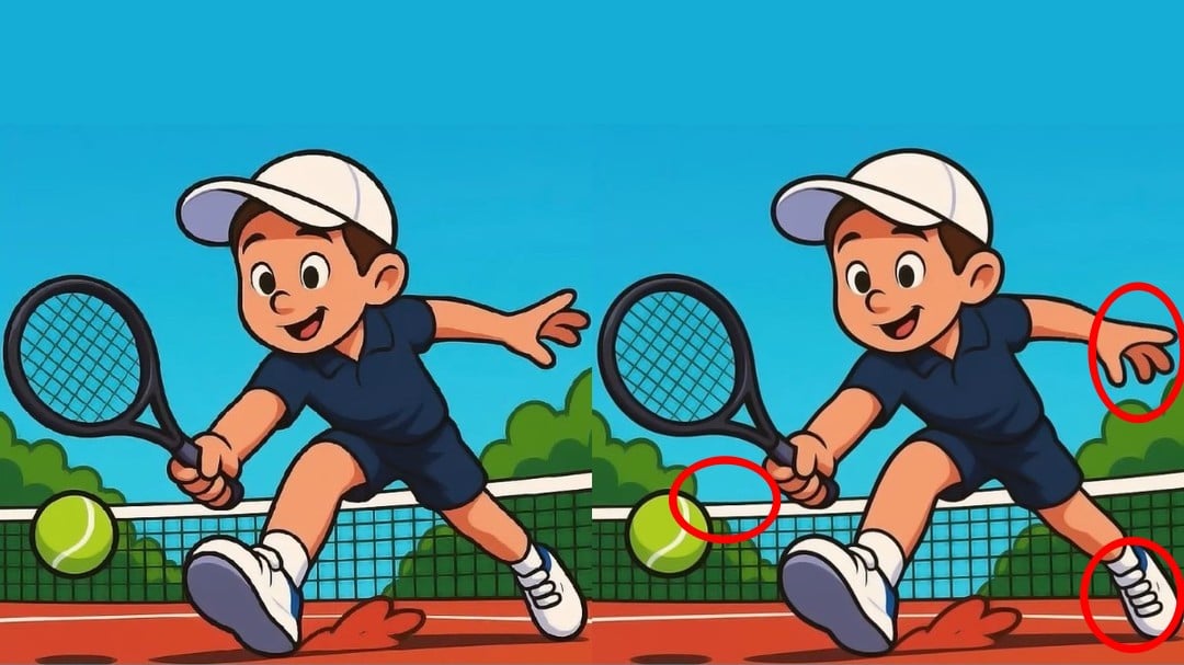 În fața ta sunt două imagini aproape identice ale unui jucător de tenis. Provocarea? Să găsești cele trei mici diferențe în doar 35 de secunde. Secretul succesului stă în a scana metodic fiecare zonă, de la fundal la cele mai mici detalii ale îmbrăcămintei și echipamentului.