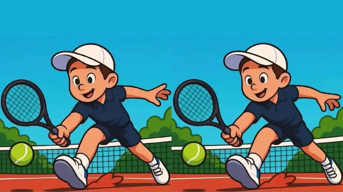 Iată-te pe terenul de tenis, pregătit pentru un meci rapid de antrenament mental. Cele două fotografii par o copie perfectă una a celeilalte, capturând același moment de acțiune. Dar, ca și în orice meci bun, detalii mici fac diferența. Ochii tăi sunt arbitrii. Poți să depistezi cele trei discrepanțe înainte ca cronometrul imaginar să sune? Aceasta este o probă clasică de atenție la detalii și viteză de procesare vizuală.