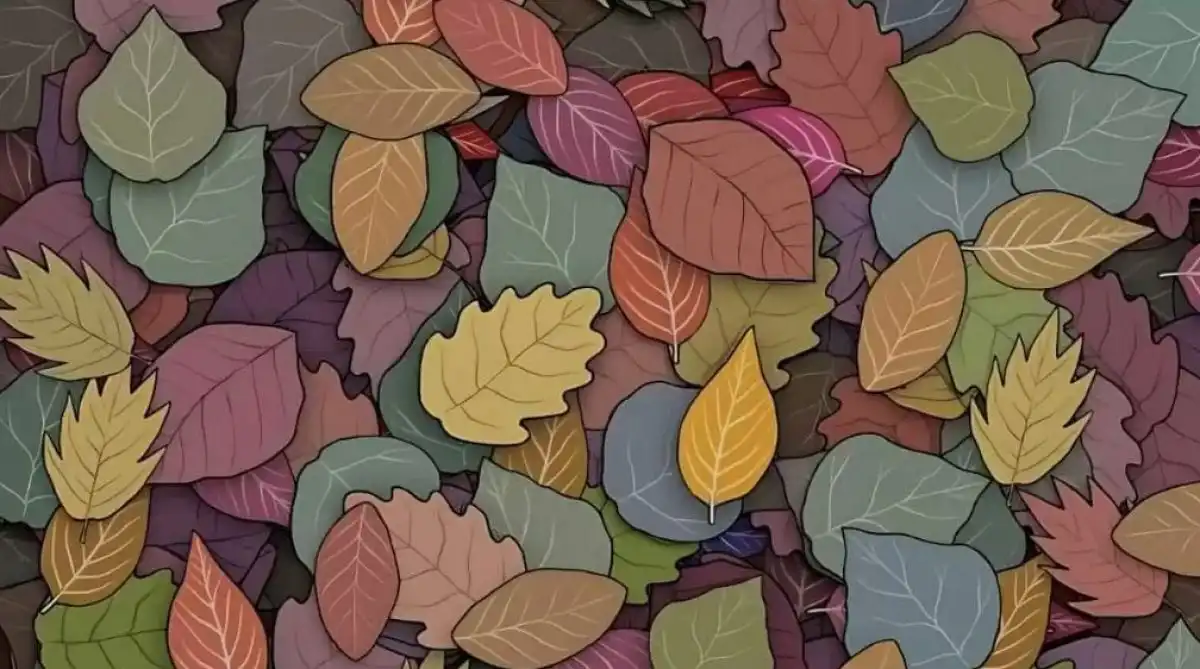 În această iluzie optică, o broască țestoasă este maestru în camuflaj, ascunsă perfect printre frunzele și culorile toamnei. Cheia este să nu cauți o formă clară, ci o perturbare în modelul natural al petelor și umbrelor.