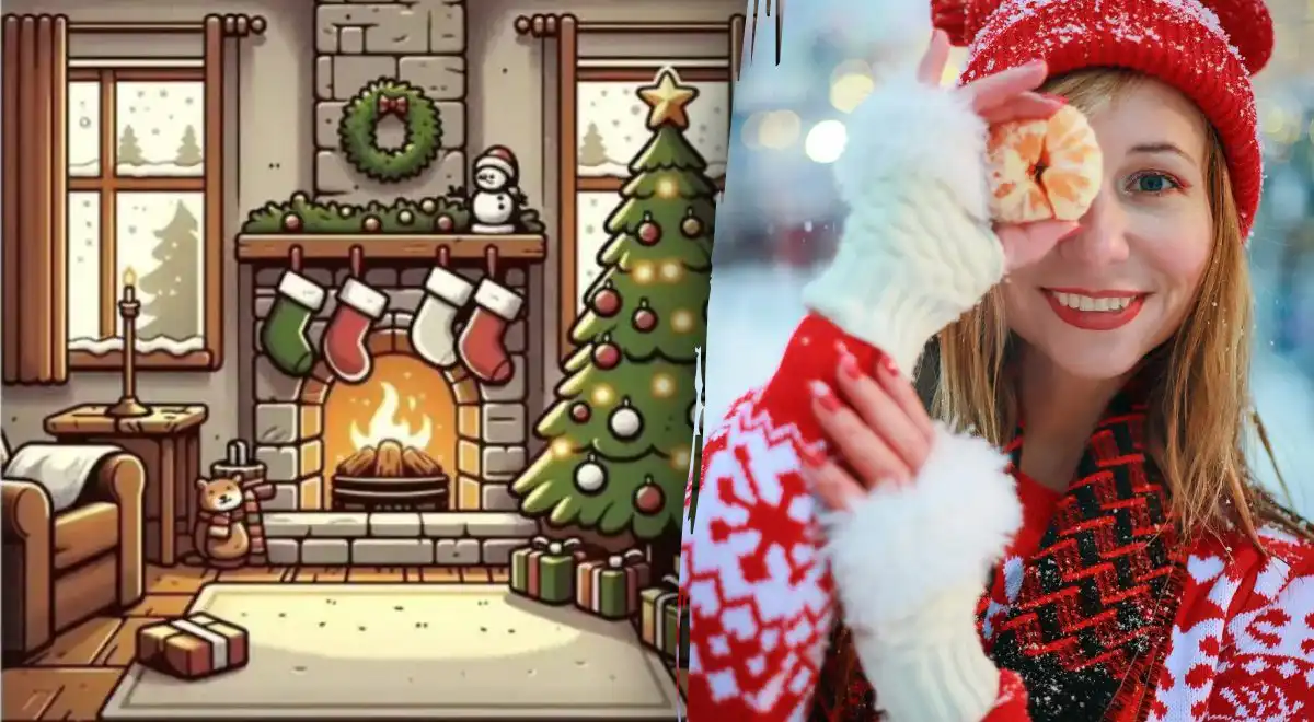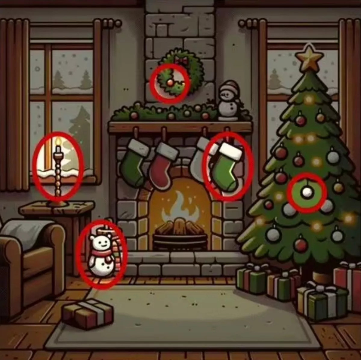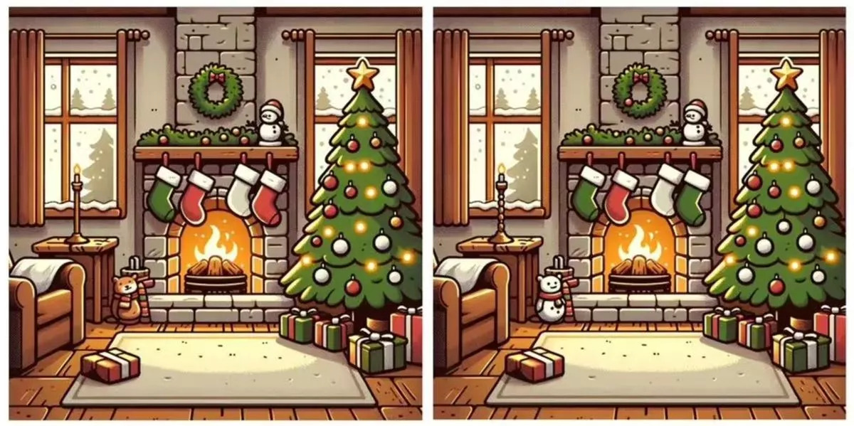 Imaginile de Crăciun sunt pline de căldură și veselie: un brad decorat, un foc în cămin, ciorapi atârnați și multe alte lucruri mici care creează atmosfera. Sarcina ta este să găsești exact cinci diferențe între cele două ilustrații aproape identice. Timpul este un factor – cei mai rapizi reușesc în sub nouă secunde. Ești gata să-ți testezi atenția la detalii și viteza de observație?