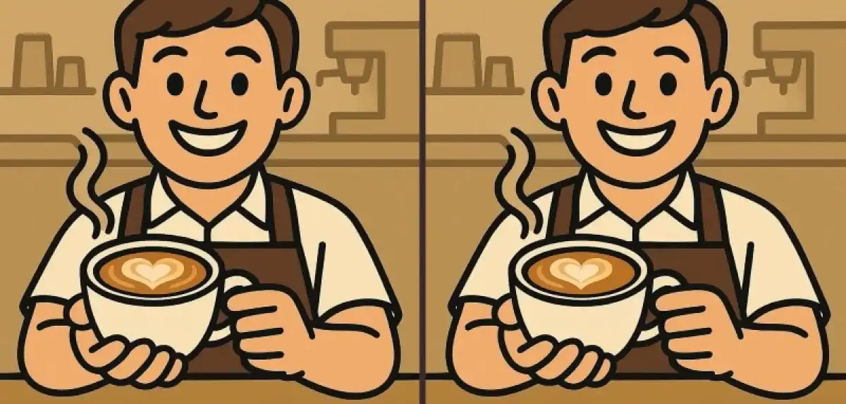 Îți place să îți testezi atenția la detalii? Această provocare clasică „Găsește diferențele” îți pune observația la încercare cu două imagini aproape identice ale unui barista. Trei mici discrepanțe sunt ascunse în culori, forme sau aranjamente. Poți să le descoperi în doar 45 de secunde? Cheia este să scanezi sistematic fiecare zonă.