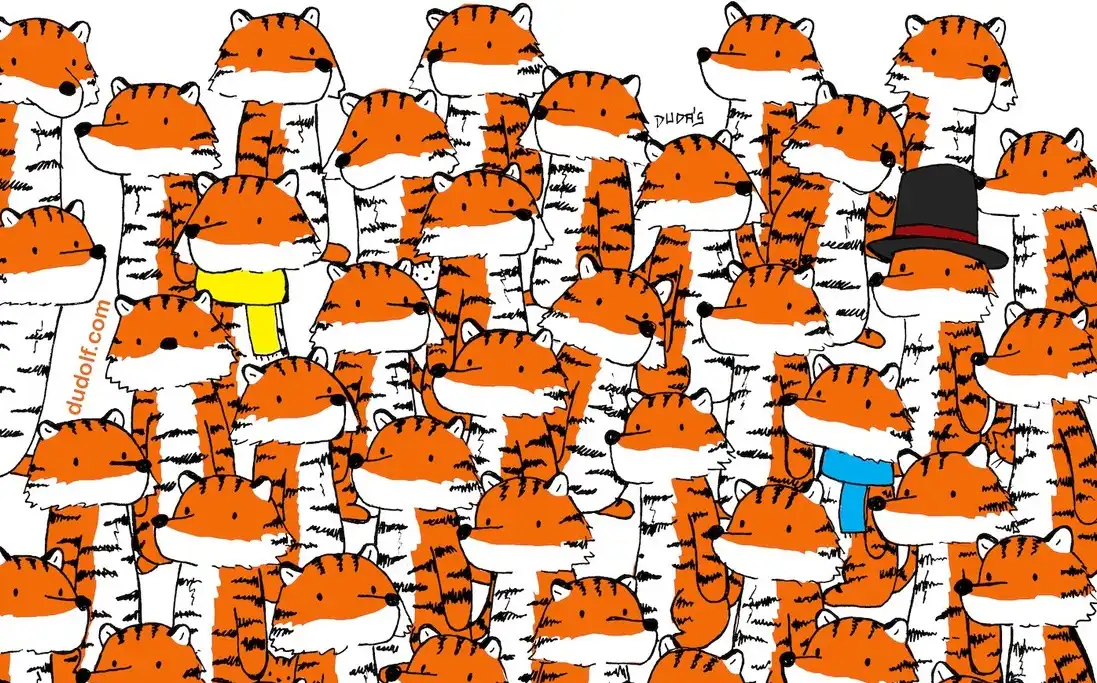 Te-ai uitat vreodată la o mulțime de animale și ai avut senzația că ceva nu se potrivește? Artistul Gergely Dudás (cunoscut online ca Dudolf) a creat exact această senzație cu un puzzle care îți testează atenția și viteza de procesare vizuală. Imaginea pare a fi un zid compact de fețe de tigri, toate cu dungi caracteristice și priviri pătrunzătoare. Sarcina ta este să scanеzi întreaga imagine în doar 10 secunde și să identifici cele patru fețe de pisică care se amestecă printre ele. Sună imposibil? Nu cu ochi ageri și o minte concentrată.
