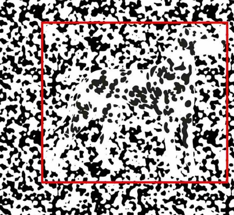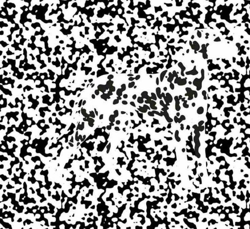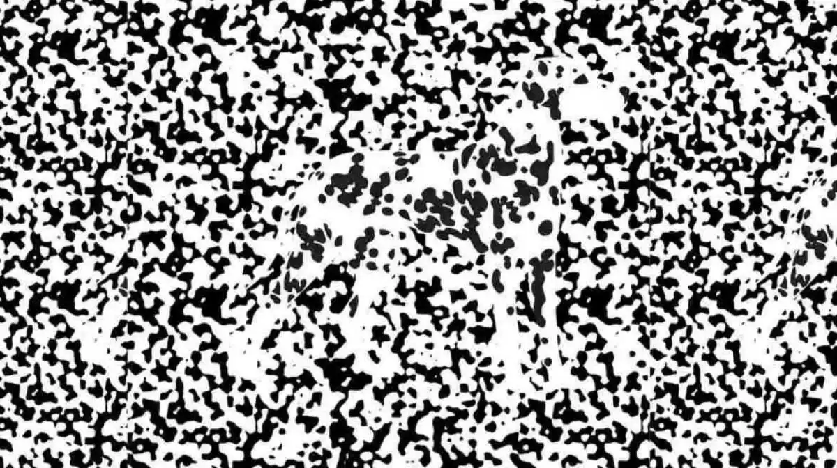 Această iluzie optică vă testează atenția și percepția într-un mod unic: printr-un haos aparent de puncte albe și negre, trebuie să distingeți silueta unui câine. Cheia este să priviți imaginea într-un mod relaxat, lăsând creierul să asocieze formele.