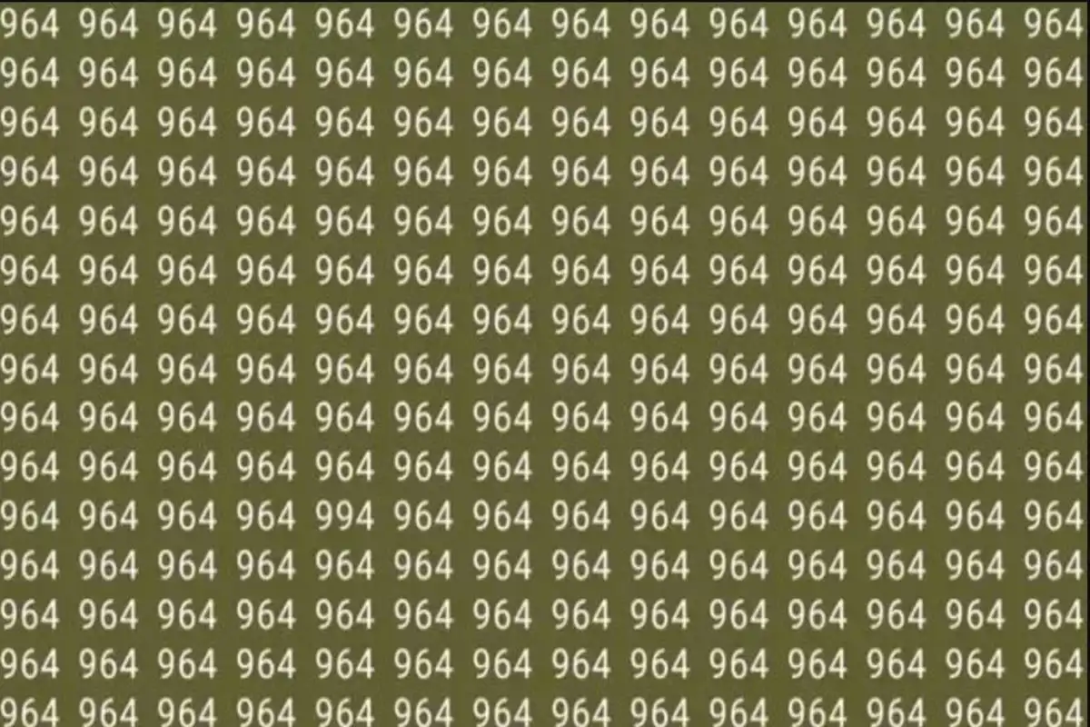 În mijlocul unei mări de numere 964 identice, se ascunde un singur intrus: 994. Provocarea este să-l găsești în doar 10 secunde, testându-ți atenția la detalii și viteza de procesare vizuală. Cheia este să nu te lași păcălit de iluzia optică creată de repetiție.