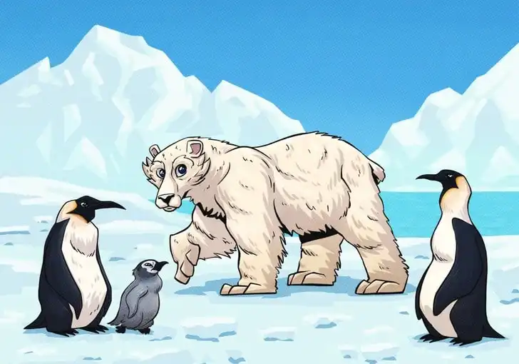 Această imagine pare să prezinte o scenă polară inocentă, dar conține o imposibilitate geografică majoră. Cheia rezolvării este să te gândești la locurile unde aceste animale trăiesc în realitate, nu doar la cum arată.