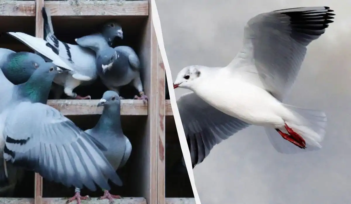 - – Porumbelul are o siluetă mai robustă și mai rotunjită decât pescărușii zvelți.