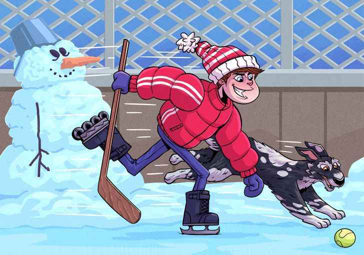 Această enigmă vizuală îți testează atenția la detalii într-un mod viclean: un băiat pare să patineze pe gheață, dar ceva în echipamentul lui nu se potrivește cu scena. Cheia este să te uiți dincolo de acțiunea principală și să inspectezi fiecare element individual.