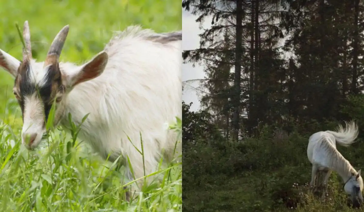 Gata pentru soluție? Animalul viclean este o capră. Ea stă ghemuită și perfect camuflată într-o zonă de tufișuri și vegetație mai închisă la culoare, în partea dreaptă a calului. Silueta ei, cu spatele arcuit și capul aplecat, se contopește cu formele și umbrele plantelor. Atenția la detalii și capacitatea de a separa un obiect de fundalul său sunt cele care fac diferența.