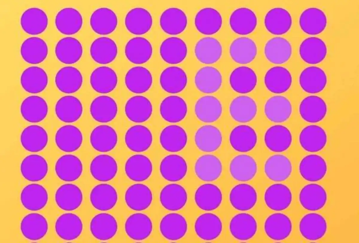 Această iluzie optică îți testează atenția la detalii: într-o mare de cercuri violet pe un fundal galben, o singură literă E este ascunsă, formată din nuanțe ușor diferite. Cheia este să nu te uiți, ci să privești și să lași mintea să detecteze contrastul.