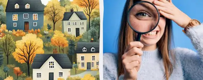 Această puzzle testează atenția și viteza de percepție. În doar 5 secunde, trebuie să localizezi berzele ascunse într-o scenă detaliată cu case și copaci.