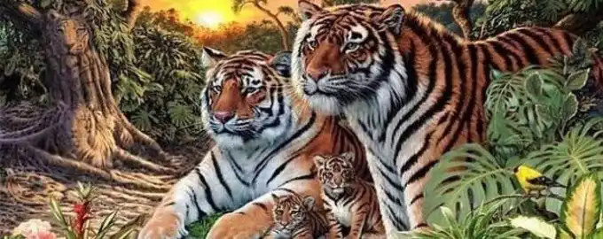 Această iluzie optică vă provoacă să găsiți 16 de tigri într-o scenă aparent simplă cu o familie de tigri. Trucul constă în a privi dincolo de cele evidente...