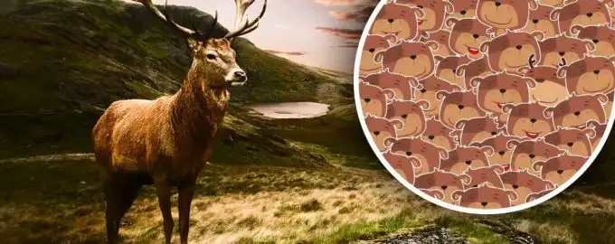 În această iluzie optică, o căprioară este perfect camuflată printr-un grup de urși. Cheia pentru a o găsi este să cauți nu forma, ci un detaliu specific care.
