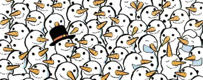 În această iluzie optică, un urs polar este ascuns cu pricepere printre o mulțime de oameni de zăpadă. Cheia este să-ți antrenezi atenția pentru a depista
