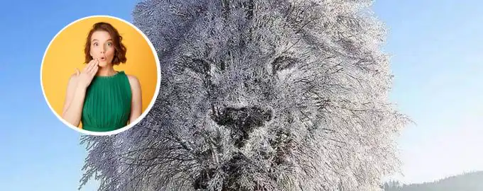 Această iluzie optică enigmatică ascunde două imagini într-una singură: un copac înghețat și un leu puternic. Primul lucru pe care îl vezi poate oferi
