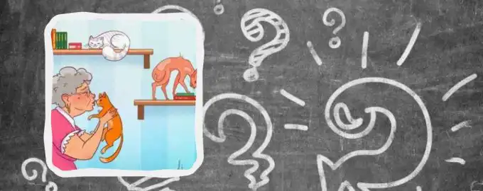 În această iluzie optică, un bărbat bătrân este înconjurat de pisici, dar una dintre ele ascunde un detaliu imposibil. Găsește inconsecvența ascunsă în