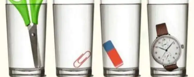 Această ghicitoare vizuală îți testează atenția la detalii și înțelegerea principiului lui Arhimede într-un mod distractiv. Patru pahare pline cu apă conțin