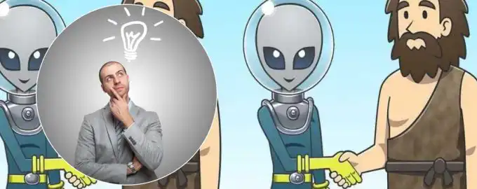 În această provocare vizuală, două imagini aparent identice cu extratereștri și oameni ai cavernelor ascund trei diferențe subtile. Cheia succesului este