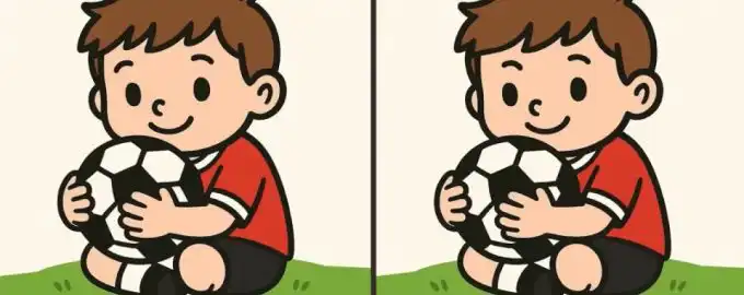 Această provocare vizuală îți testează atenția la detalii: două imagini aparent identice cu un băiat și o minge ascund trei mici diferențe.