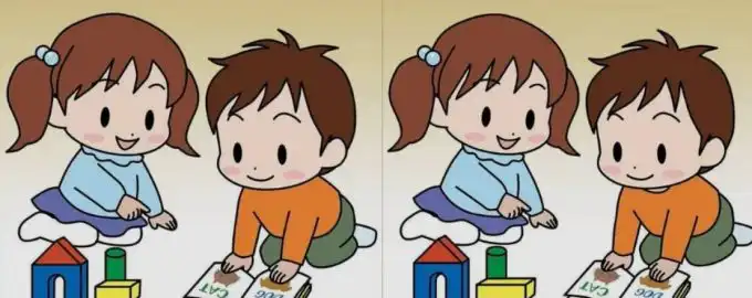Această sarcină vă provoacă să găsiți trei mici diferențe între două imagini aproape identice cu copii care citesc. Limita de timp de 43 de secunde testează atenția la.
