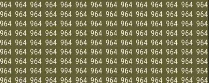 În mijlocul unei mări de numere 964 identice, se ascunde un singur intrus: 994. Provocarea este să-l găsești în doar 10 secunde, testându-ți atenția la