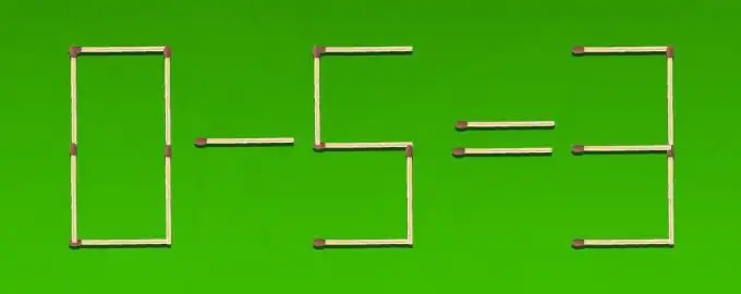 Provocarea este să corectezi egalitatea incorectă 0-5=3 mutând doar două chibrituri. Cheia este să nu te limitezi la operația de scădere;