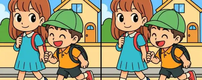 În această provocare clasică „Găsește diferențele”, două imagini aparent identice cu copii mergând la școală ascund trei mici discrepanțe.