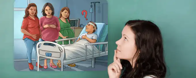 Un bărbat și-a pierdut memoria și trebuie să-și identifice soția însărcinată dintre trei vizitatoare. Timpul este limitat, iar secretul nu stă în cât de